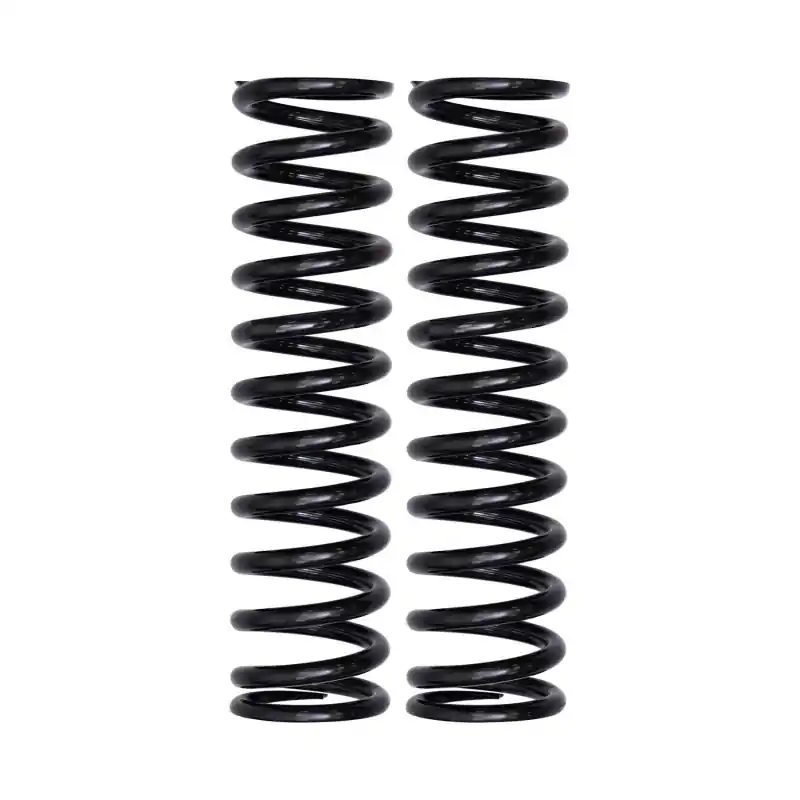 Skyjacker’s legendary Softride coil spring technology engineered processes achieve exact height and precise coil spring rates. Known for phenomenal Softride performance, Skyjacker’s precision engineering gives you off-road responsiveness with smooth consistence handling characteristics.The process starts with high tensile chrome silicon wire, an advanced method of shot peening and a presetting process. Each coil spring is blasted (shot peen) with hard steel pellets at very high velocities. Shot peening compresses the surface of the steel thereby increasing the tensile strength of the spring. Compressing the spring completely down to where the coils touch (solid height) is preset. This takes any fatigue or stress off the spring and eliminates sagging. Every coil spring has endured a cycle test to assure the very best in quality. Coilover coil springs end configurations are closed. Each coil springs end configurations is ground flat to create a flat surface perpendicular to the spring axis for even surface. This flat surface delivers an even distribution of spring force to the working assembly and improves ease of assembly. All Made in the USA with a stylish, extremely durable protective powder-coated black finish that resists corrosion