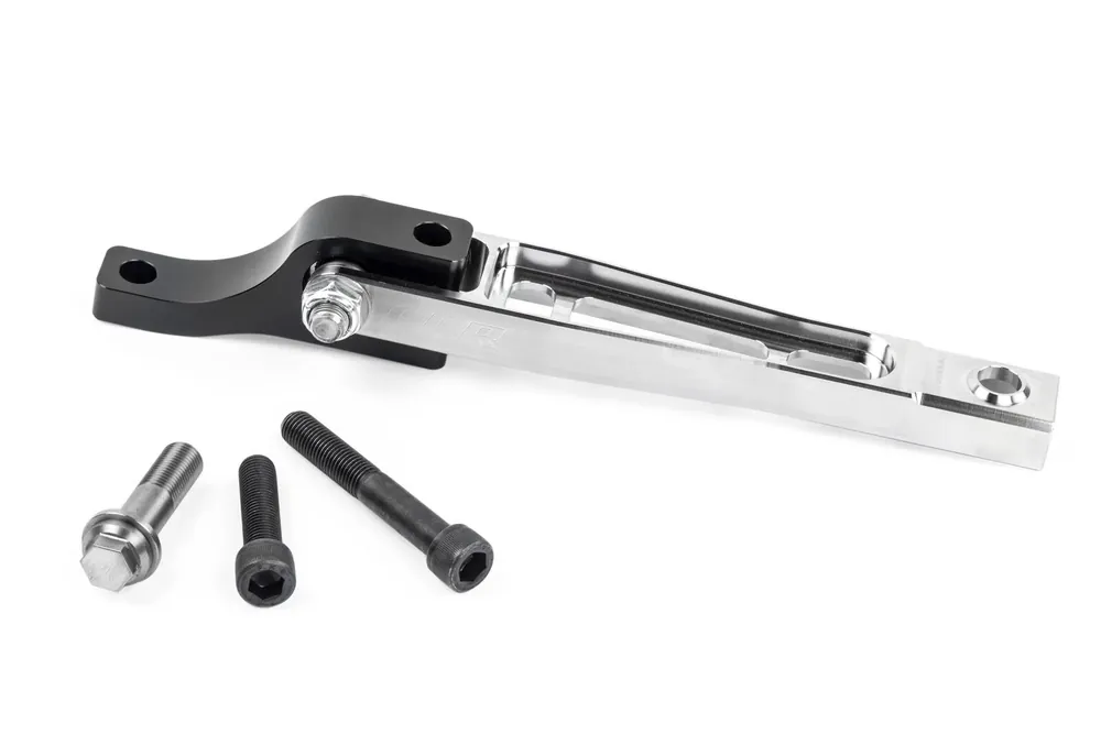 The APR Pendulum mount replaces the factory mount with a new, thick, billet-aluminum and billet-stainless-steel two-piece design, featuring a PTFE-lined spherical bearing and new bolts. The system stiffens the driveline to improve shift quality and power transition. It is easy to install, addresses all concerns with the factory setup and includes all necessary hardware to bolt on and enjoy!