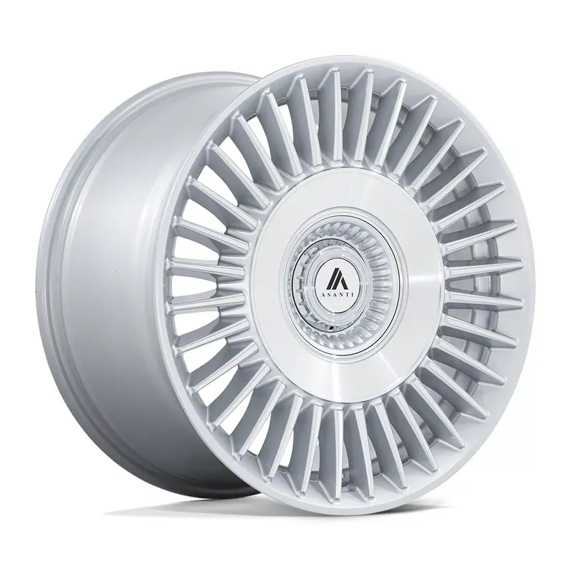 This 22×9 Asanti Tiara Gloss Silver with Bright Machined Face Wheel; 22×9 is completed in a high-quality gloss silver finish with accents to make your wheel the envy of everyone. For added looks and durability, the wheels has a durable clear coat that withstand the rigors of daily driving.