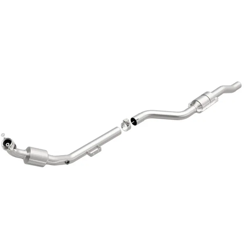 Keep the check engine light off with MagnaFlow OEM Grade Federal/EPA Compliant Direct-Fit Catalytic Converter 51706. With features including free-flowing mandrel-bent tubing and highly corrosion resistant stainless steel construction, easily install this spun body converter yourself using the proper tools, no cutting or welding required. MagnaFlow’s state-of-the-art metrology department uses the latest 3D scanning systems during research and development, so you can be confident that your new part will fit and function like the original equipment. By replicating the OE spun body design, the single laser fusion weld greatly reduces the possibility of a leak, and our compact, low-mass design also allows for greater thermal efficiency. Designed to fit the 2003-2005 Mercedes-Benz E320, 2003-2006 Mercedes-Benz E500, and more, this direct-fit catalytic converter also interchanges with OE parts 211 490 09 19 80 and 211 490 56 19 80, among others. Hardware is included to eliminate the hassle of working with corroded factory parts. This replacement part is designed to meet or exceed Federal emissions requirements set forth by the EPA, complying with legal standards for OBDII Federally registered vehicles with California or Federal/EPA Emission systems.
