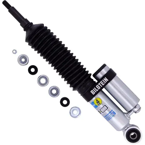 Bilstein B8 5160 remote reservoir shock absorbers are designed as a direct fit solution for lifted trucks and SUVs. The remote reservoir will offer increased cooling capacity and wheel travel to optimize overall performance compared to a traditional shock absorber. These shock absorbers feature a monotube design for consistent fade free performance and utilize velocity sensitive digressive valve settings which are tuned for each specific application. Each shock absorber is fitted with a unique 360 degree swivel banjo hose fitting, providing a clean, low profile installation. B8 5160 remote reservoir shock absorbers will increase overall durability of your vehicle allowing you to conquer the harshest of off-road environments.