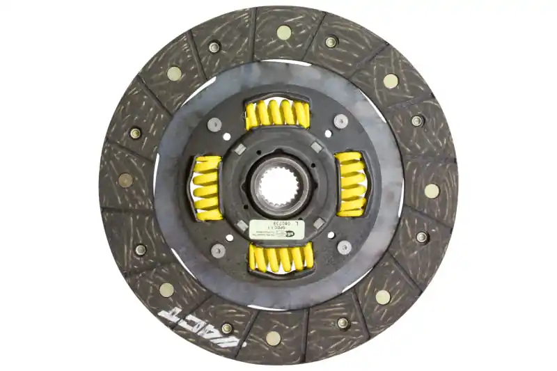 3001501 is a performance street disc and the most popular disc purchased. It features premium organic materials with high copper content for better heat transfer. Performance street discs allow for quicker shifting and smooth engagement. These discs feature a reduced marcel for faster shift action to complement ACT pressure plates. ACT spring-centered assemblies use bushings and cone springs similar to factory clutch discs. This creates frictional dampening, which improves clutch life and reduces noise. Quiet operation with increased strength and reliability.