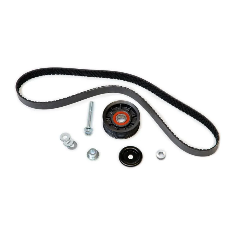 This is our original belt solution that deletes A/C, power steering, and the OEM K series tensioner. Now thanks to our new KMiata intake manifold, the OEM auto tensioner and idler pulley can also be retained by using this belt only. If you’re using any other intake manifold or want to route your upper radiator hose und