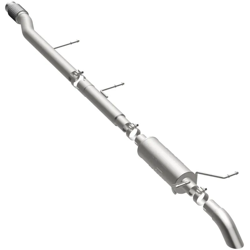 The MagnaFlow Off-Road Pro Series Cat-Back Performance Exhaust System 17146 brings additional off-roading prowess and our deep signature exhaust note to your Truck with a weight-optimized, dyno-tested, corrosion resistant and durable stainless steel design engineered to closely hug the undercarriage for improved ground clearance. Exhaust kit 17146 is engineered to produce Very Aggressive exterior and Aggressive interior sound levels. Extensive 3D scanning was used during the development of this Truck exhaust system to create a direct-fit design, enabling a do-it-yourself installation process. 17146’s emissions-legal cat-back design replaces all your truck’s exhaust components from the catalytic converter on back with its 3in. diameter mandrel bent main piping that passes through 1 Straight-Through mufflers before ending in a turndown before rear axle exit with 3in. Satin Clamp-On Single Wall Turndown Cut Edge tips. Exhaust system 17146 is produced using advanced CNC precision robotic manufacturing techniques and backed by MagnaFlow’s limited lifetime warranty.