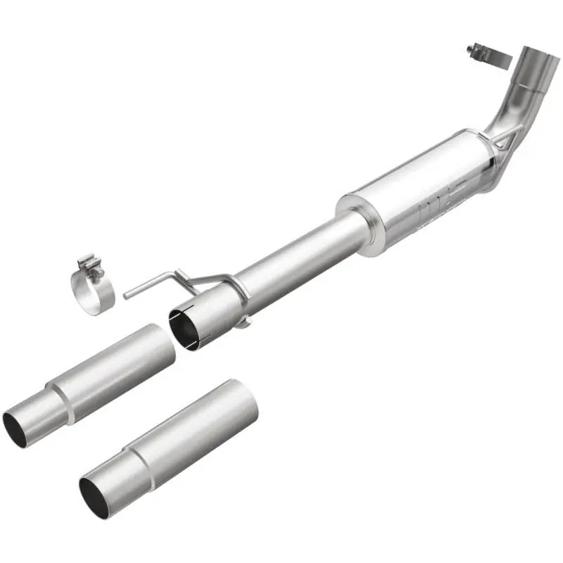 - The MagnaFlow Ford F-150 D-Fit Muffler Replacement Kit Performance Exhaust System with Muffler #19572 is compatible with all 2015-2024 Ford F-150s, offering enthusiasts an easy way to upgrade their trucks with the deep signature sound and dyno-proven performance that MagnaFlow exhaust systems are famous for. This easy-to-install bolt-on solution is designed to clamp on to the stock break points and replaces the restrictive factory muffler with a MagnaFlow straight-through muffler while retaining the OEM piping and tailpipe. MagnaFlow #19572 is engineered to produce a moderate level of exterior sound, allowing you to enjoy the deep rumble of your truck’s engine while maintaining mild noise levels in the vehicle’s interior. The exhaust kit utilizes mandrel bent 3” tubing and is produced using CNC precision robotic manufacturing techniques. Each exhaust system features durable 100% stainless steel construction, all backed by a limited lifetime construction warranty.