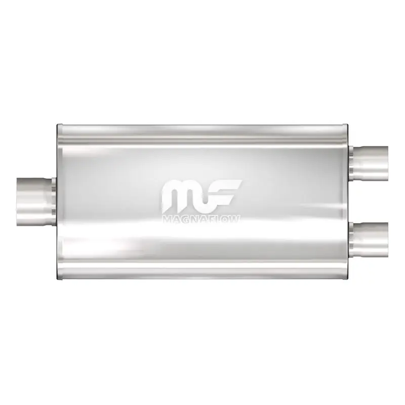 The MagnaFlow 5 X 11in. Oval Straight-Through Performance Exhaust Muffler 12588 is engineered to enhance your ride with a healthy helping of our signature exhaust sound and dyno-proven performance thanks to its free-flowing straight-through perforated stainless steel core wrapped in stainless steel mesh and acoustic fiber fill. The reversible, universal 3/2.5in. diameter inlet/outlet Straight-Through layout allows you to install it in whatever orientation and configuration you see fit. However, professional installation is highly recommended. Muffler 12588s weight-optimized 5x11x22in. oval-shaped body features a satin finish that elevates the overall aesthetics of your current exhaust setup. 12588 is made of durable, corrosion resistant stainless steel and produced using cutting-edge CNC precision robotic manufacturing techniques, all backed by MagnaFlow’s limited lifetime construction warranty.