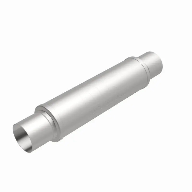 - The MagnaFlow 4in. Round Straight-Through Performance Exhaust Muffler 10419 brings our world-famous exhaust sound and dyno-proven performance to your ride in a weight-optimized 4x4x14in. package with a premium satin finish. The straight-through free-flowing design of this round-bodied muffler’s reversible, universal 3/3in. diameter inlet/outlet layout enables versatile installation options to match the spacing requirements of your vehicle. Due to the cutting and welding involved, professional installation is highly recommended. Internally, 10419 utilizes a perforated stainless steel core wrapped in stainless steel mesh and acoustic fiber fill to achieve a powerful, resonant tone. This muffler is made of durable, corrosion resistant stainless steel and produced using cutting-edge CNC precision robotic manufacturing techniques, all backed by MagnaFlow’s limited lifetime construction warranty.