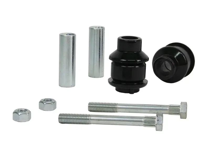 Whiteline Adjustable Camber kits allow for easy on-car adjustment and fine tuning of camber settings resulting in improved traction, increased cornering grip and better tyre life – ultimately improving overall performance. The kit includes low compliance synthetic elastomer bushings which maintain preferred alignment settings as well as enhanced steering response.