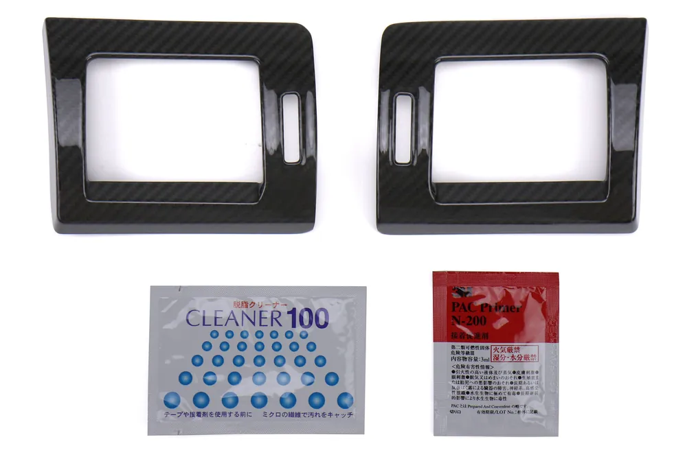 Featuring pre-applied low thickness double-sided adhesive, installation of these AC trim covers is a breeze. Simply clean the surface and apply the covers for an instant upgrade. Imported directly from Japan, these covers boast superior craftsmanship and quality. However, please note that once “ships from manufacturer” displays, delays of 4-6 weeks may occur. Despite the wait, the result is well worth it, as these trim covers add a touch of sophistication and style to your vehicle’s interior, making every drive a more enjoyable experience.
