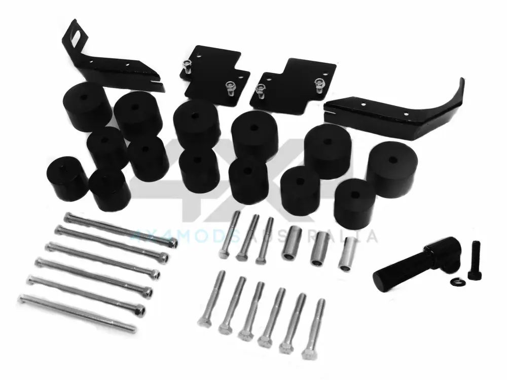 PSR offers a complete bolt-in 2″ Body Lift Kit for a single or extra cab variation with a tub. Kit is supplied with high tensile bolts and blocks to the size or larger than OE body mounts to be compliant. Kit comes with a bolt in steering column extension. Also supplied is a reo bar lift bracket to allow the factory reo to be retained if plastic bumper is still fitted to vehicle. Spacers are supplied to couple the factory splash guard if retained. An auto line bracket is supplied for auto models so cooler line will not rub on the sway bar. Kit is complete with no additional items to purchase to Body Lift your Isuzu DMAX 2″. Suits DMAX1 and DMAX2. Extra / Single Cab (WITH TUB). Blocks are machined from 6061 T6 Alloy block and anodized black.