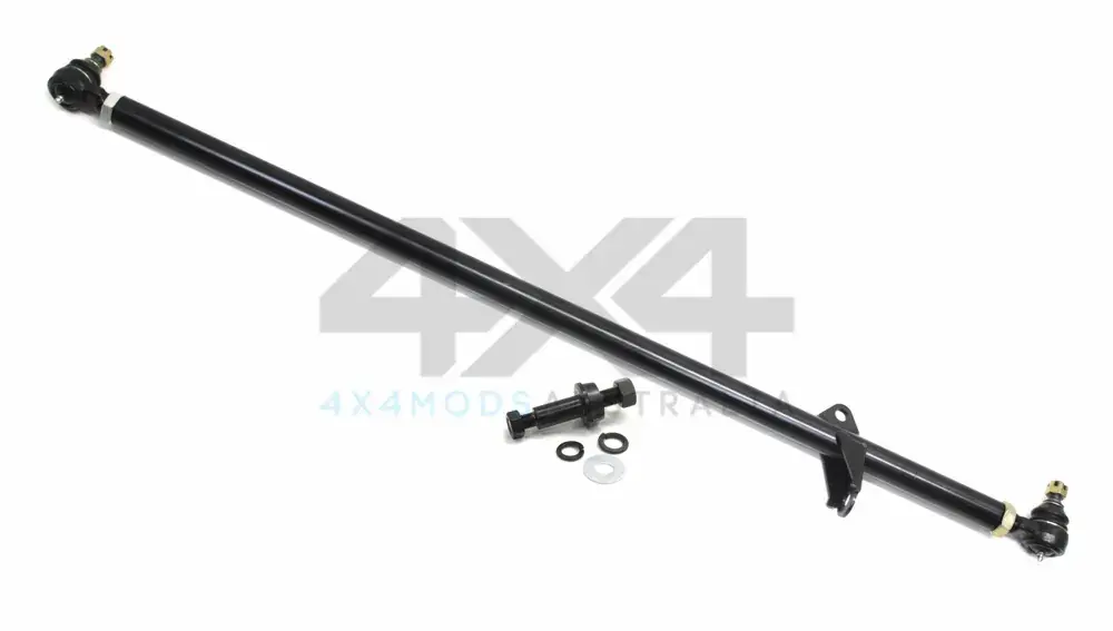 PSR’s Nissan Patrol GQ replacement drag link is a heavy duty adjustable option to replace the factory non-adjustable unit. This drag link is made from 32mm 4140 chromoly with a 5.5mm wall thickness to increase strength. Supplied with greaseable, replaceable heavy duty tie rod ends in a 22mm male design for increased strength. Drag link has both styles of damper brackets welded in place to suit both style steering dampers. Bar is CNC machined and undergoes multiple treatments for corrosion treatment to increase longevity. Bar supplied in a coated Black finish to blend into the chassis.