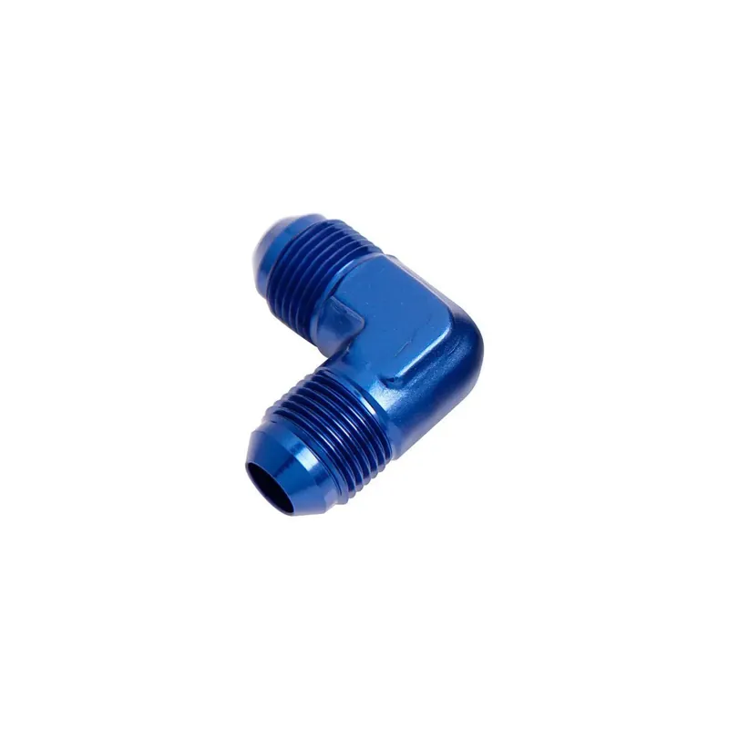 Aluminium AN male to male union on 90 degree bend. This fitting will allow you to connect two female AN flare fittings or hose ends without the need for washers or sealant.