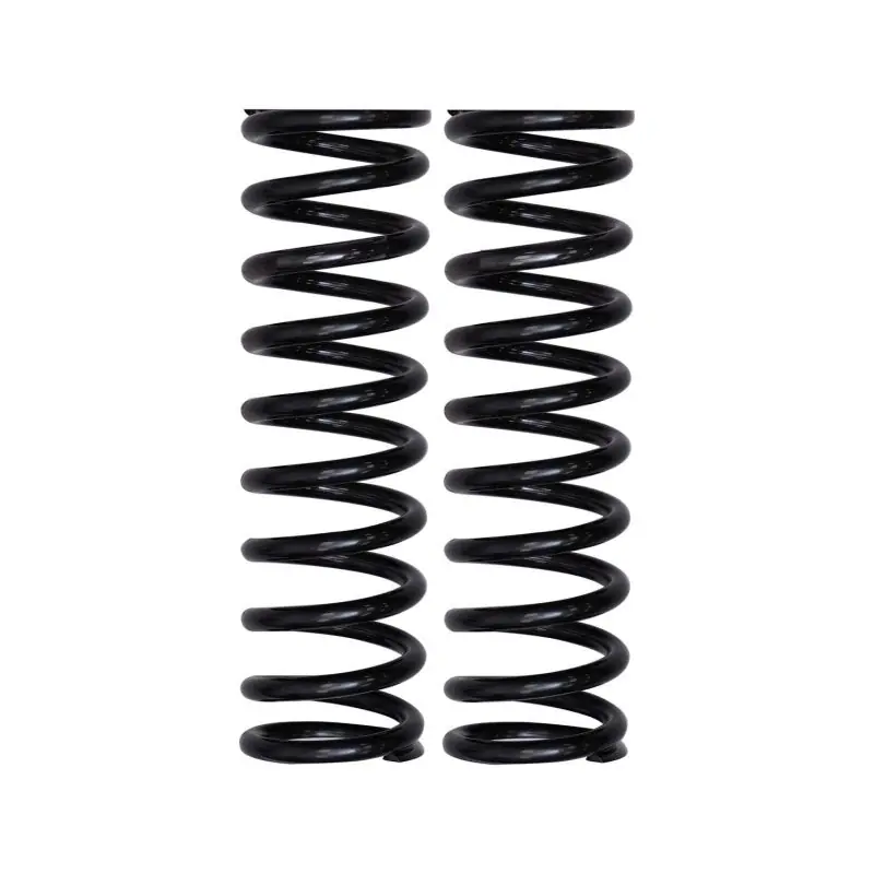 Skyjacker’s legendary Softride coil spring technology engineered processes achieve exact height and precise coil spring rates. Known for phenomenal Softride performance, Skyjacker’s precision engineering gives you off-road responsiveness with smooth consistence handling characteristics.The process starts with high tensile chrome silicon wire, an advanced method of shot peening and a presetting process. Each coil spring is blasted (shot peen) with hard steel pellets at very high velocities. Shot peening compresses the surface of the steel thereby increasing the tensile strength of the spring. Compressing the spring completely down to where the coils touch (solid height) is preset. This takes any fatigue or stress off the spring and eliminates sagging. Every coil spring has endured a cycle test to assure the very best in quality. Coilover coil springs end configurations are closed. Each coil springs end configurations is ground flat to create a flat surface perpendicular to the spring axis for even surface. This flat surface delivers an even distribution of spring force to the working assembly and improves ease of assembly. All Made in the USA with a stylish, extremely durable protective powder-coated black finish that resists corrosion