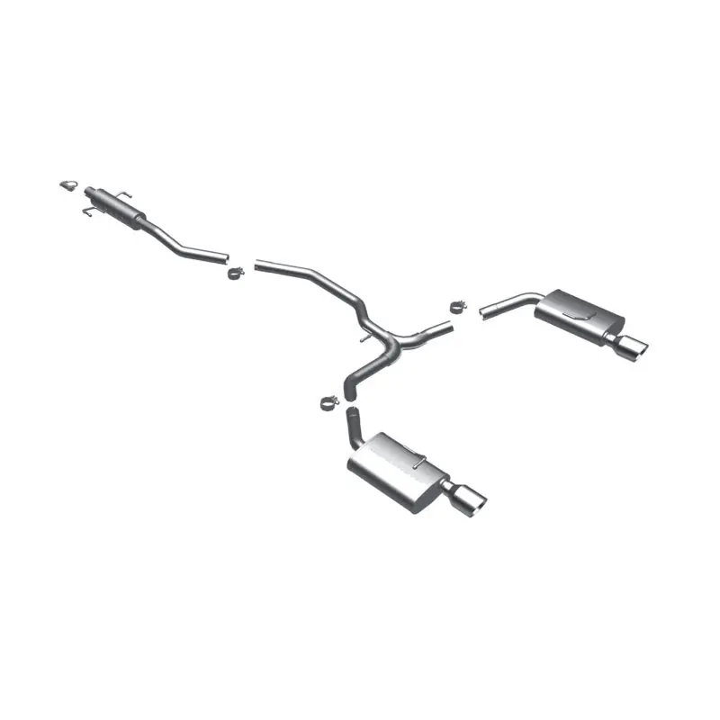 The MagnaFlow Street Series Cat-Back Performance Exhaust System 16675 brings out the personality of your Car with our signature resonant, powerful engine tone and dyno-proven performance. Thanks to its fast-flowing, mandrel bent 2.25in. main piping and 3 Straight-Through mufflers ending in a Dual Split Rear exit with 4in. Polished Welded-On Double Wall Angle Cut Folded Edge tips, this Car exhaust kit has the performance chops to match its sporty sound and appearance. Upgrade your ride to the next level with an exhaust that has the pipes to put other Car’s to shame. With this system your vehicle will be producing Moderate exterior and Mild interior sound levels while leaving other cars and trucks feeling envious at every stoplight. Exhaust kit 16675 features a cat-back layout that replaces your ride’s stock exhaust components from near the catalytic converter on back. Extensive 3D scanning during development has resulted in a direct-fit design that you can easily install yourself. 16675 is produced using CNC precision robotic manufacturing techniques and is backed by MagnaFlow’s 1-year limited finish warranty and limited lifetime construction warranty.
