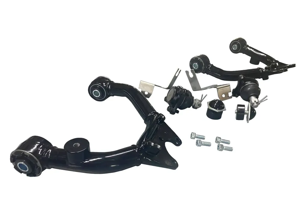 A short fall of the modern day IFS 4wd is the adjustment range provided for successful wheel alignments, this becomes even more of an issue when the vehicle is lifted by more than 1 inch. Not only does the vehicle run into camber and caster issues, but ball joint articulation and clearance issues to the coil over strut at ride and droop height. The new Whiteline offset UCA (Upper Control Arm) is an all-in-one solution for any vehicle that has been lifted between 30mm and 70mm. Providing an increase between +2.5 and +3.5 degrees of caster and up to 1.5 degrees of negative camber increase (figures quoted are based off an approximate 50mm/ 2 inch) along with greater clearance to the coil over strut and more articulation of the arm by virtue of new maintenance free GIIRO bushing technology.